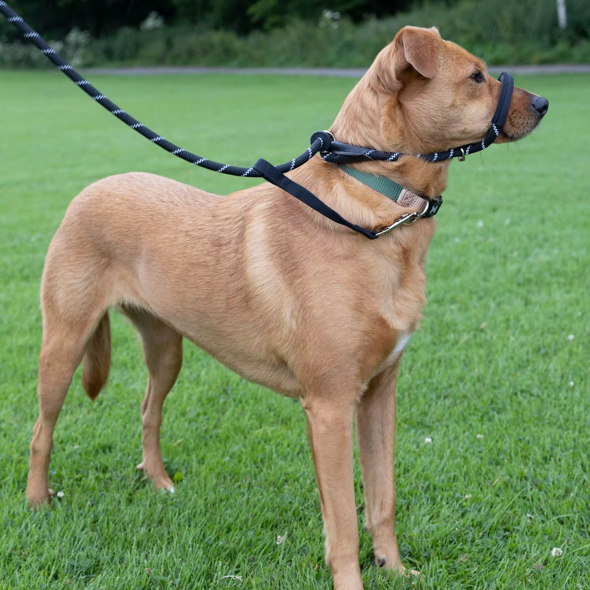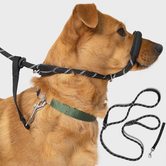 The neoprene-padded nose section prevents rubbing and keeps your dog comfortable, while the easy slide-adjust system lets you fit it in seconds—simply create two loops, pop one over the head, and place the second under the chin and over the nose.